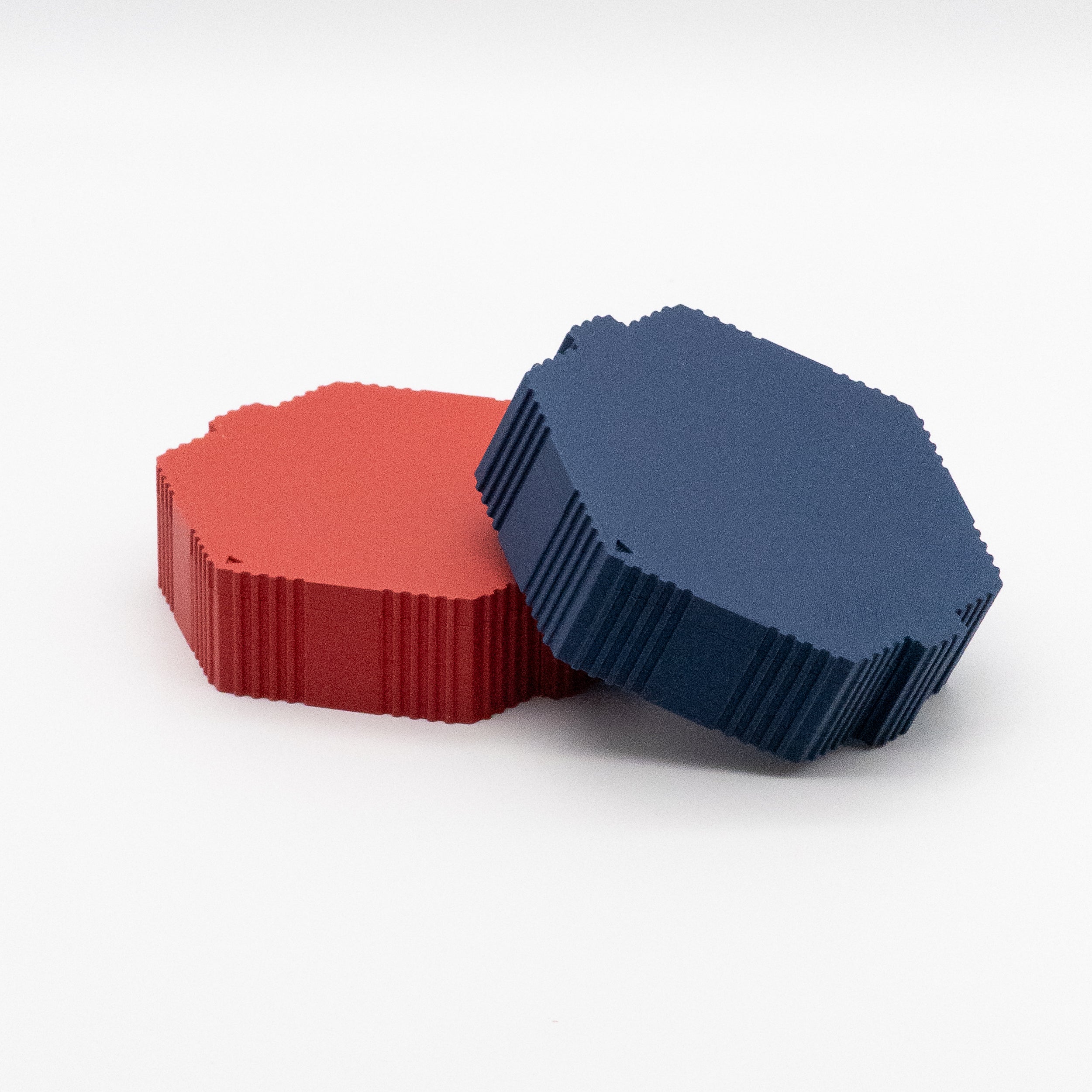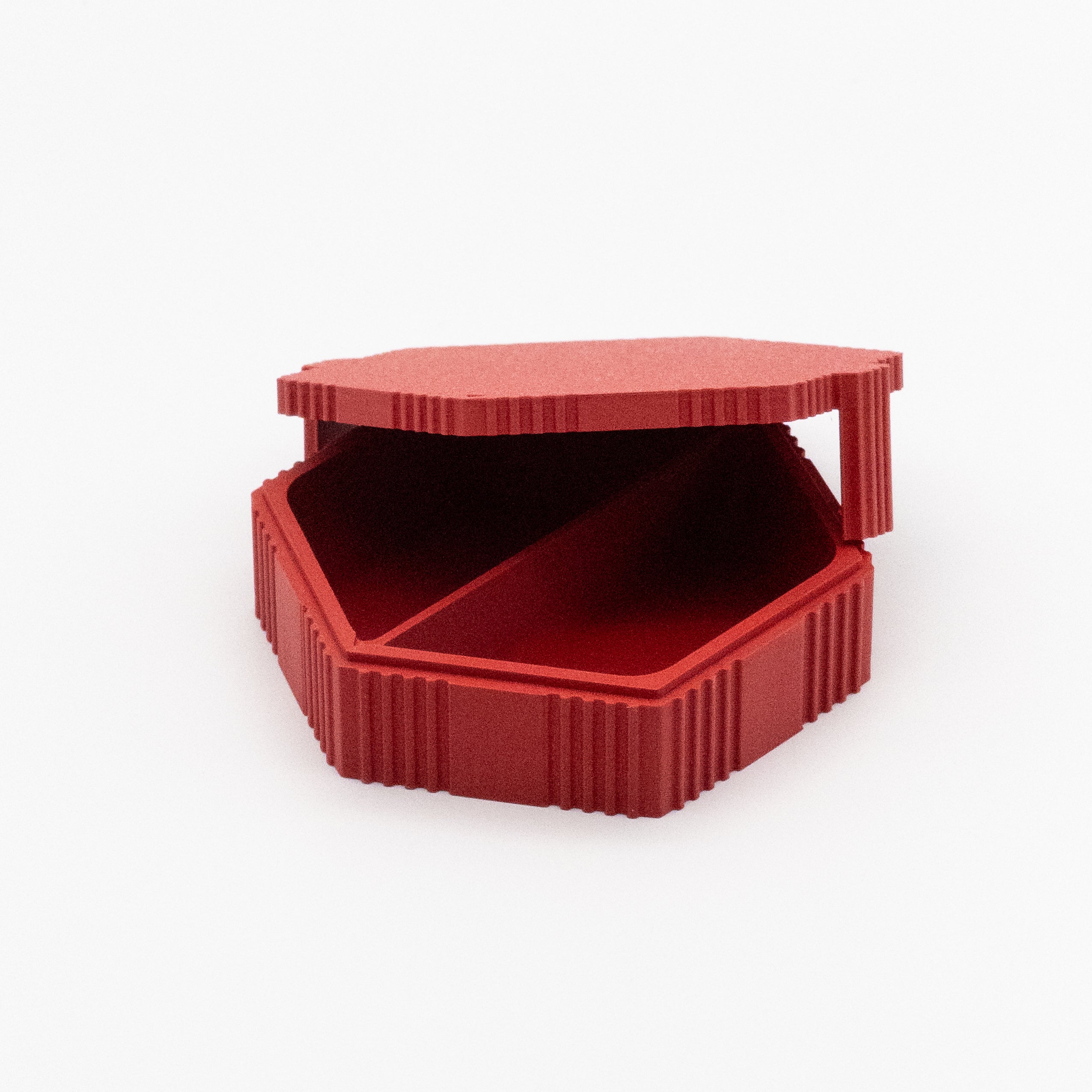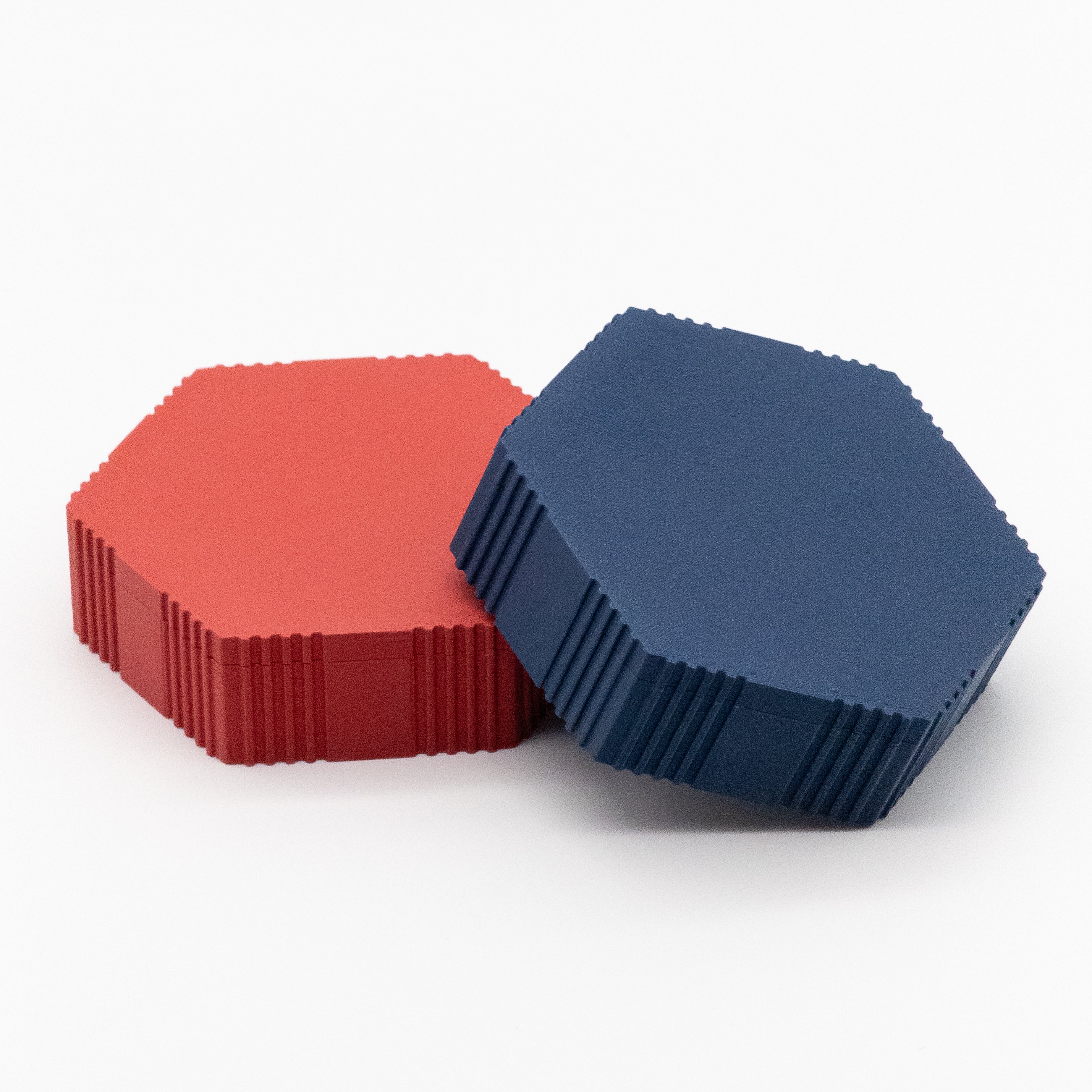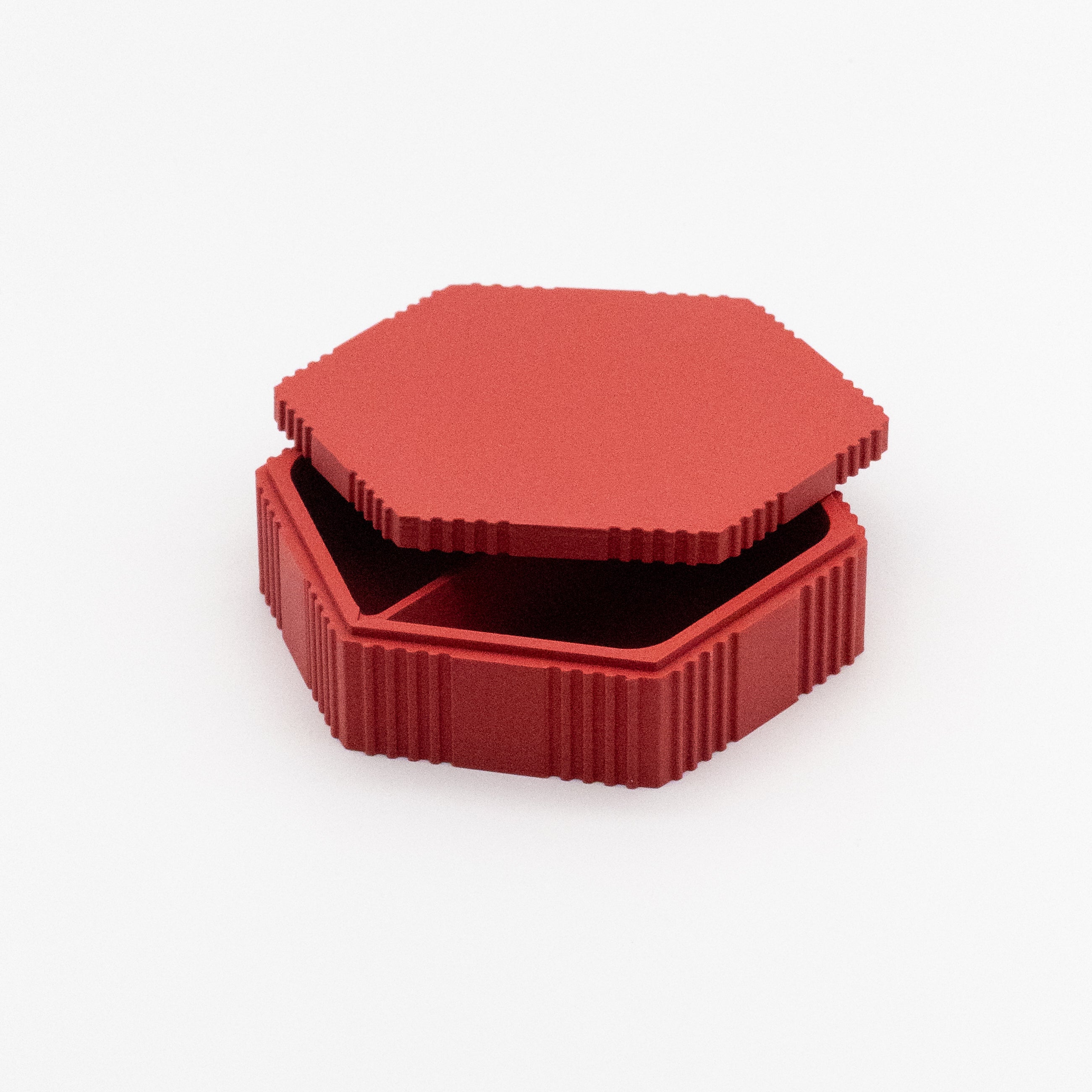Our cap slides over the top of our hex trays to protect or conceal the items inside. While there is some slight friction fit, if you are looking for something to secure the items inside, check out our magnetic lid .